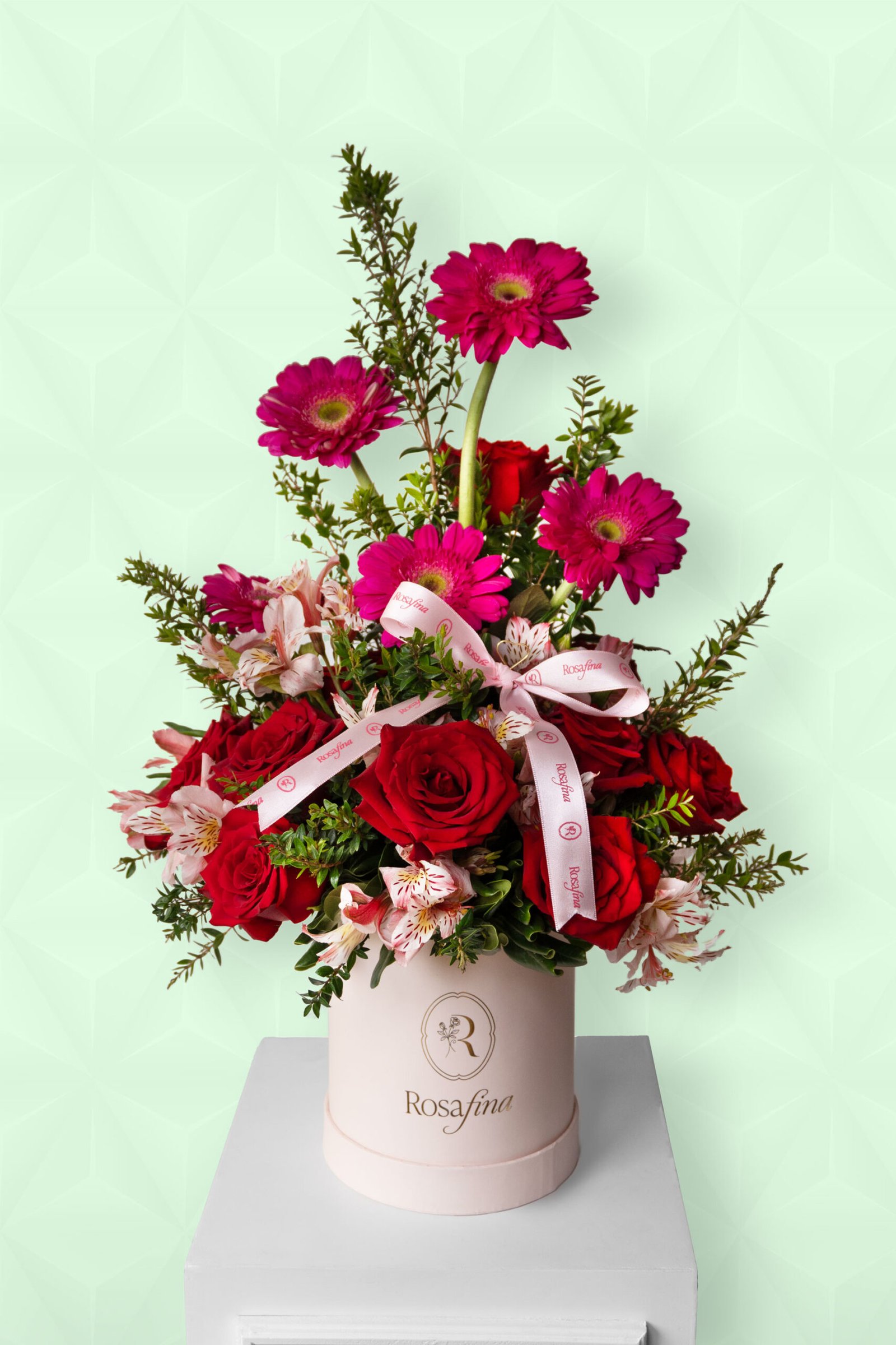 - Rosas, gerberas, astromelias y follaje de temporada.
